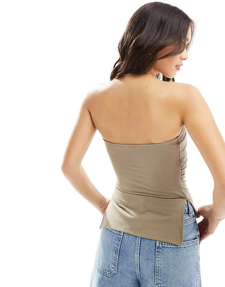 Bershka Soft Touch High Neck Top And Trousers Co-ord In Dark Grey