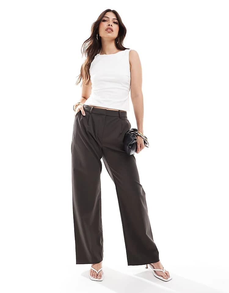 Bershka Tie Waist Wide Leg Linen Trousers In Brown For Women