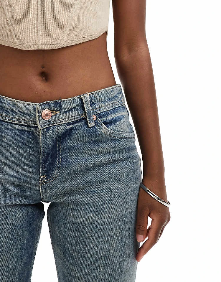 Bershka High Waisted Wide Leg Jeans In Light Wash Blue For Women