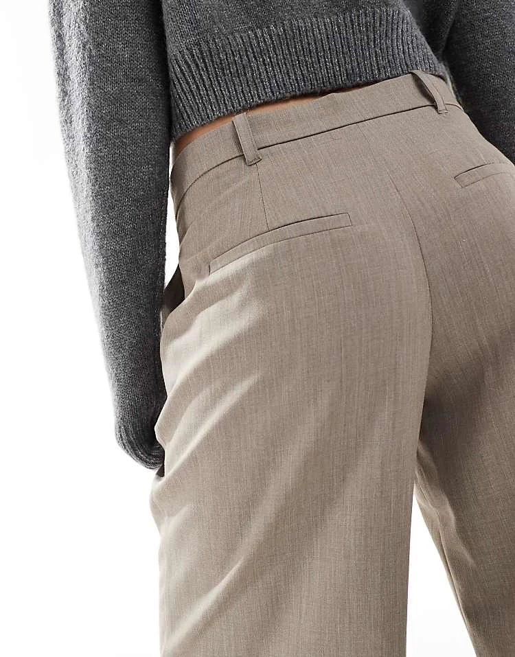 Bershka Tie Waist Wide Leg Linen Trousers In Ecru Stripe For Women
