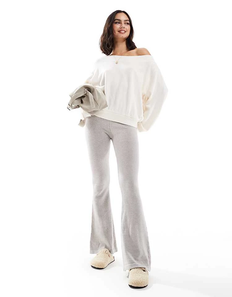 Bershka Soft Touch High Neck Top And Trousers Co-ord In Dark Grey