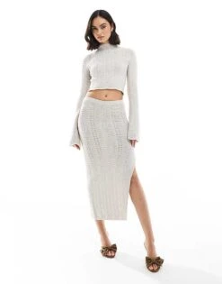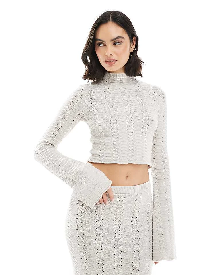 Bershka Open Knit Top And Trousers Co-ord In Sand