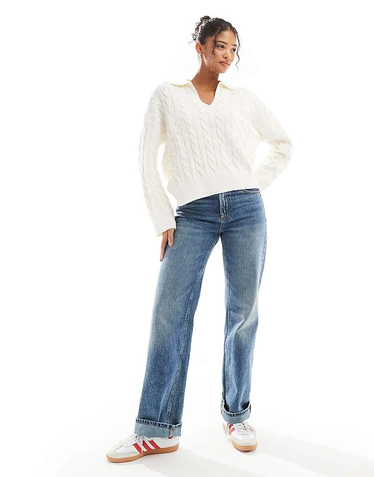 Bershka High Waisted Wide Leg Jeans In Light Wash Blue For Women