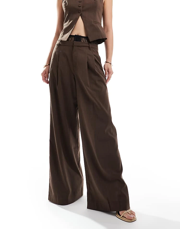 Bershka Tie Waist Wide Leg Linen Trousers In White For Women