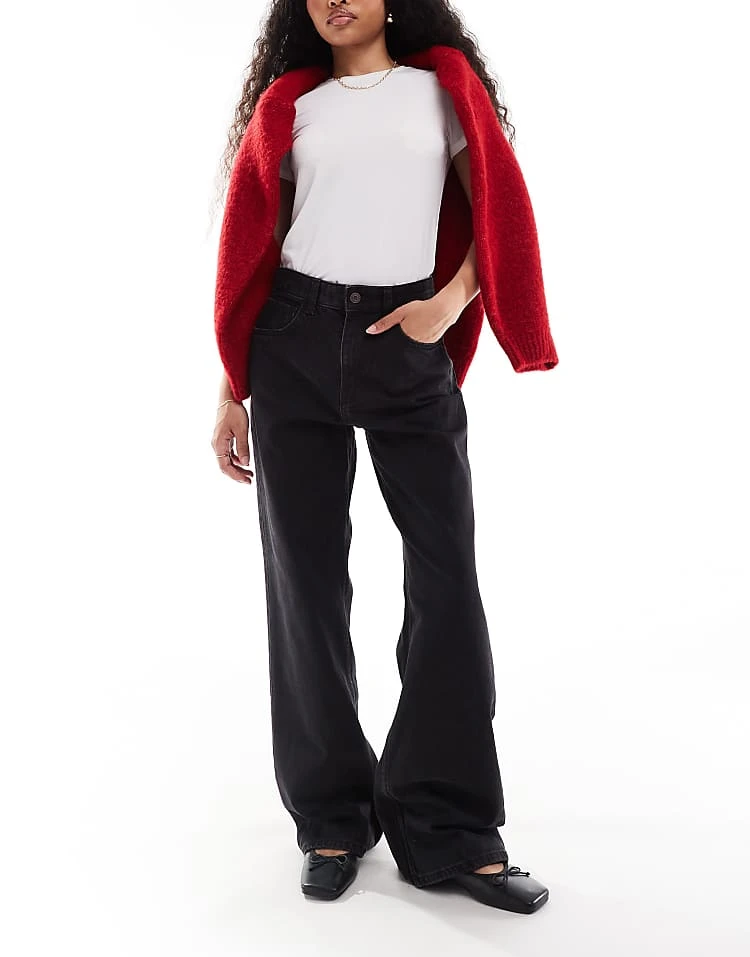 Bershka High Waisted 90s Wide Leg Jeans In Washed Grey For Women