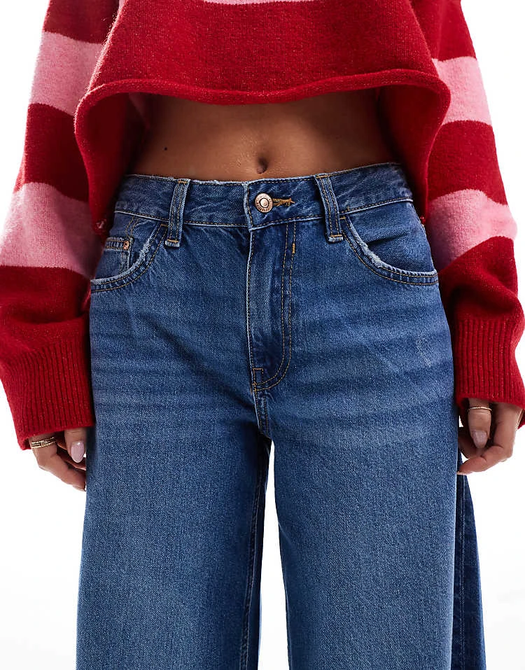 Bershka High Waisted Wide Leg Jeans In Indigo Wash For Women Blue