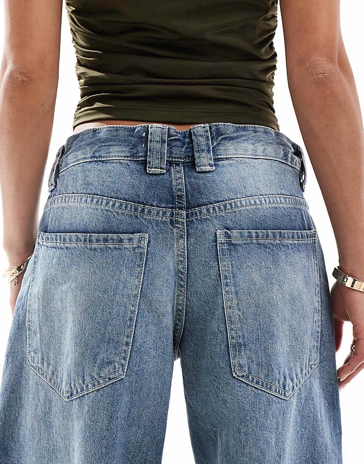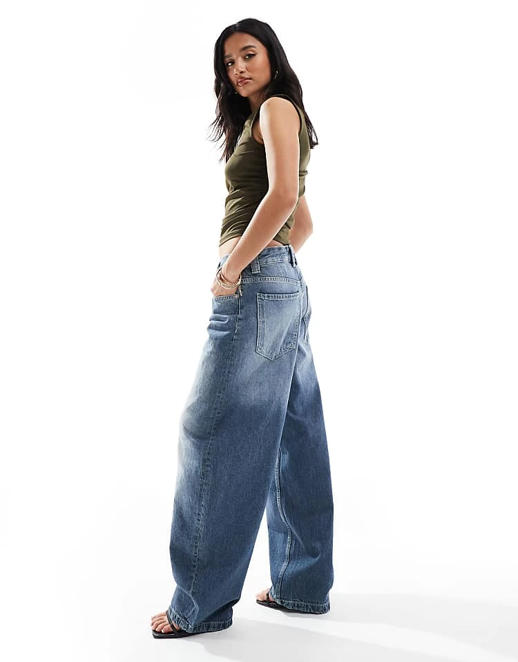 Bershka High Waisted 90s Wide Leg Jeans In Washed Grey For Women