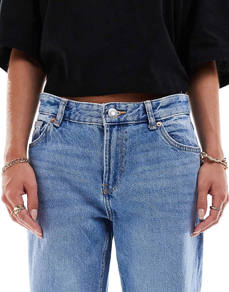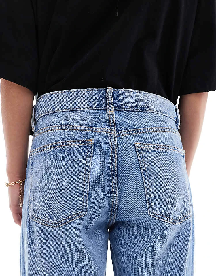 Bershka High Waisted Wide Leg Jeans In Light Wash Blue For Women