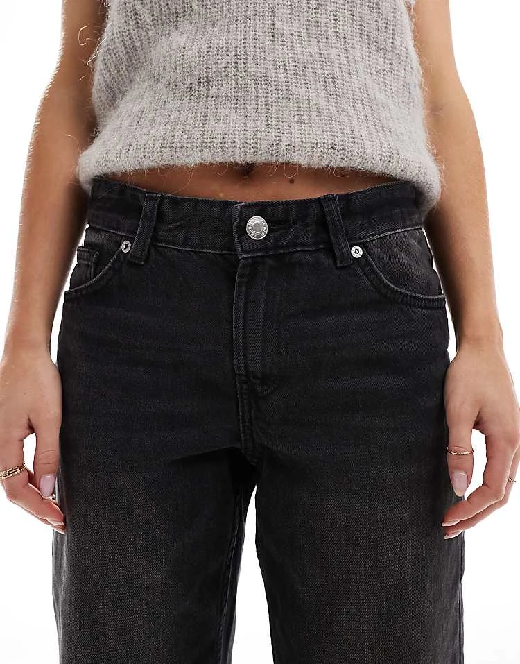 Bershka Clean Wide Leg Jeans In Authentic Dark Blue For Women