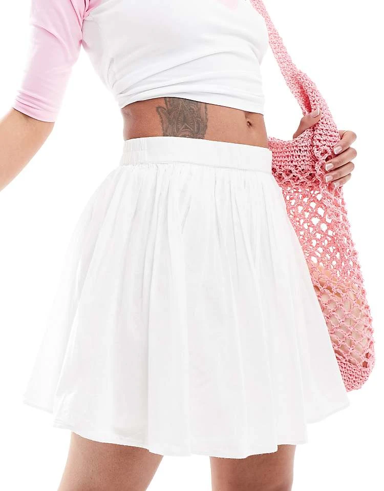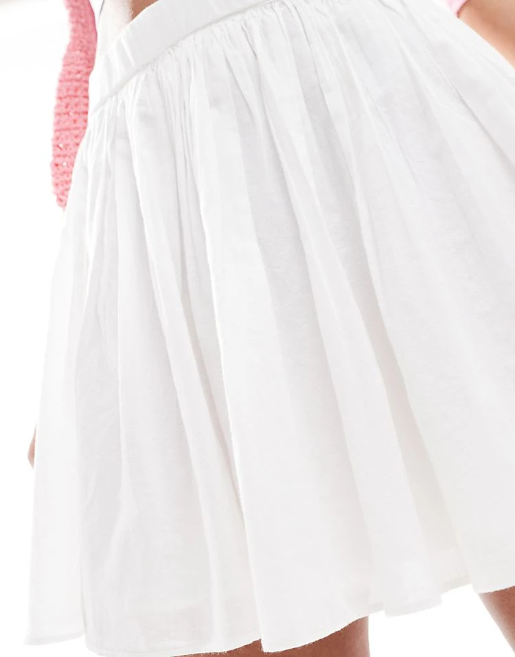 Bershka Tie Waist Wide Leg Linen Trousers In White For Women