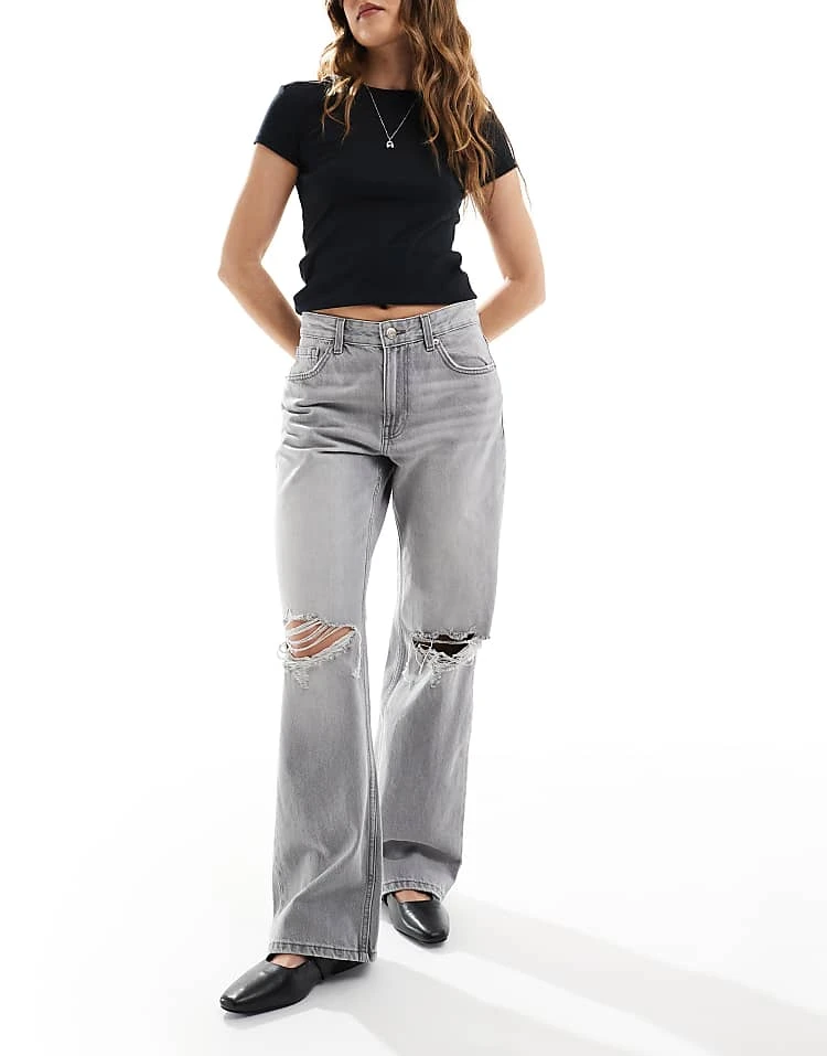 Bershka Petite High Waisted Wide Leg Jeans In Black For Women Black
