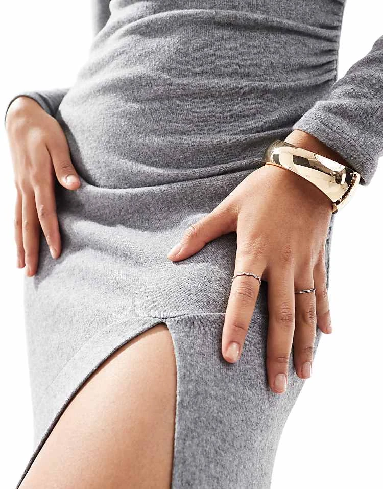 Bershka Soft Touch High Neck Top And Trousers Co-ord In Dark Grey