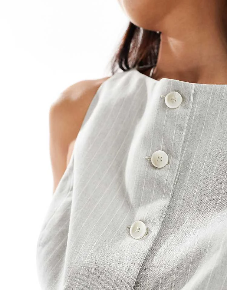 Bershka Tie Waist Wide Leg Linen Trousers In Ecru Stripe For Women