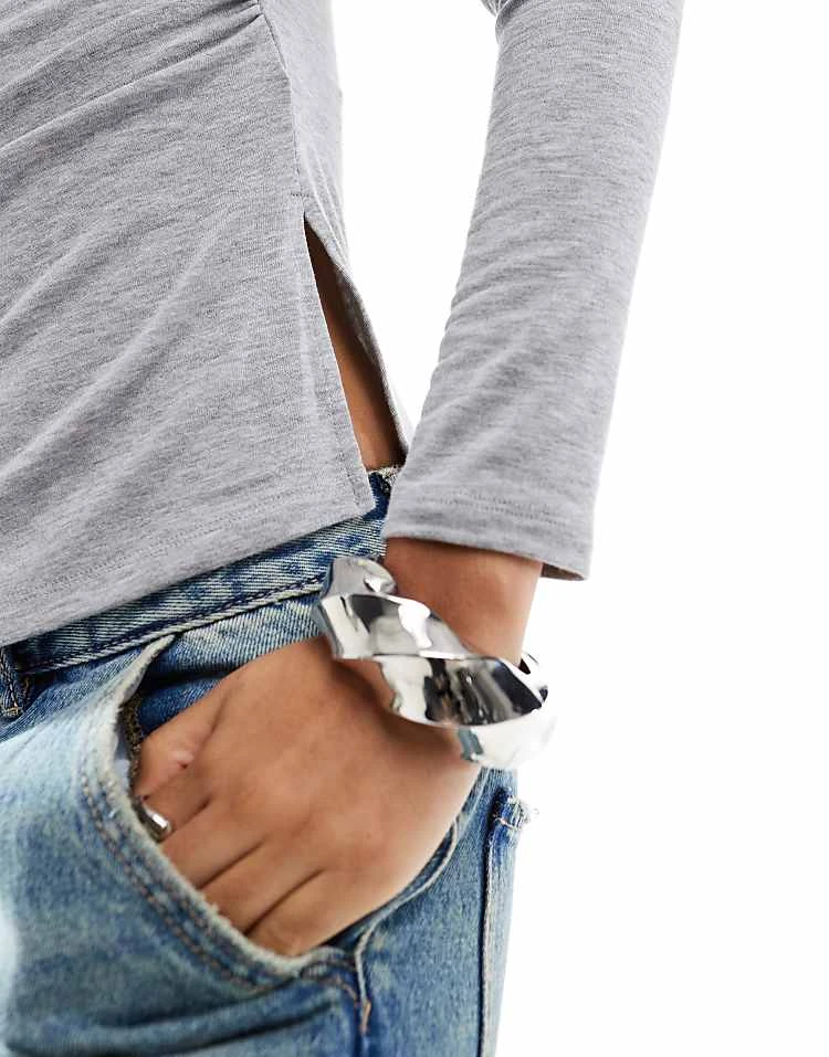Bershka High Waisted 90s Wide Leg Jeans In Washed Grey For Women