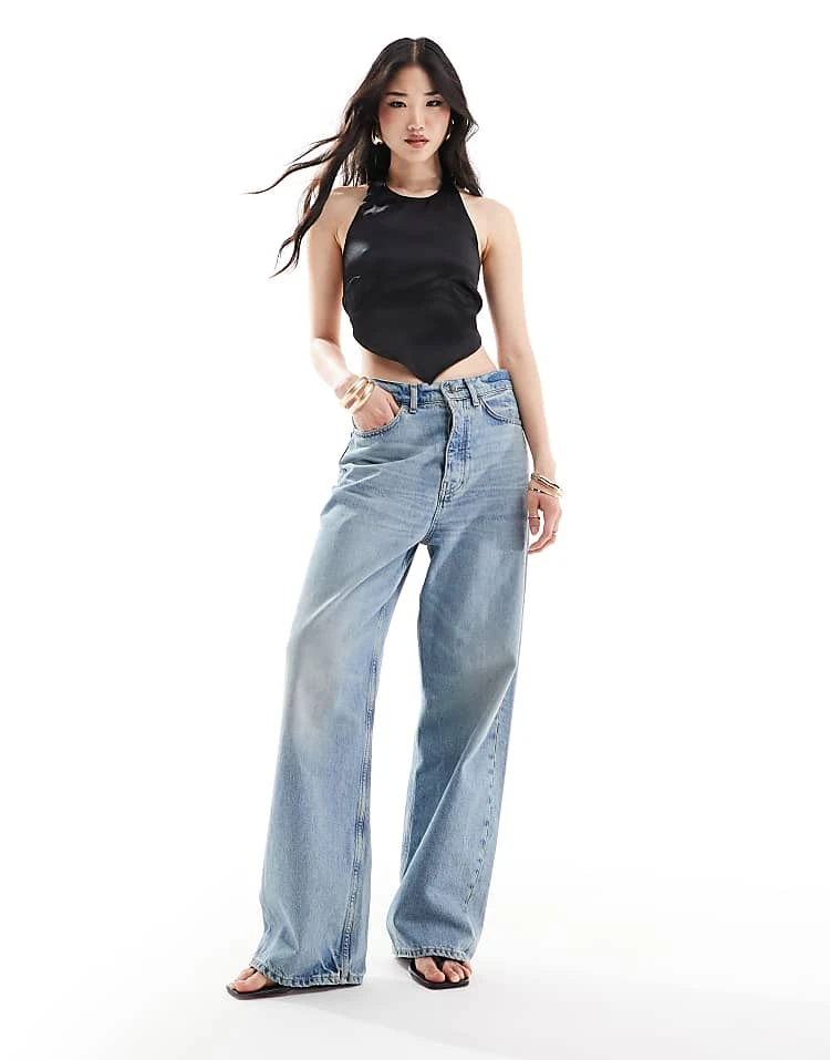 Bershka High Waisted Wide Leg Jeans In Black For Women Black