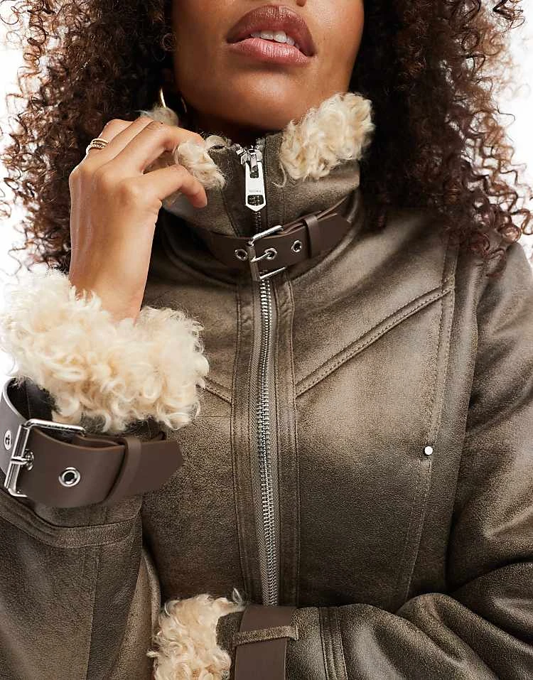 - Faux-shearling trims