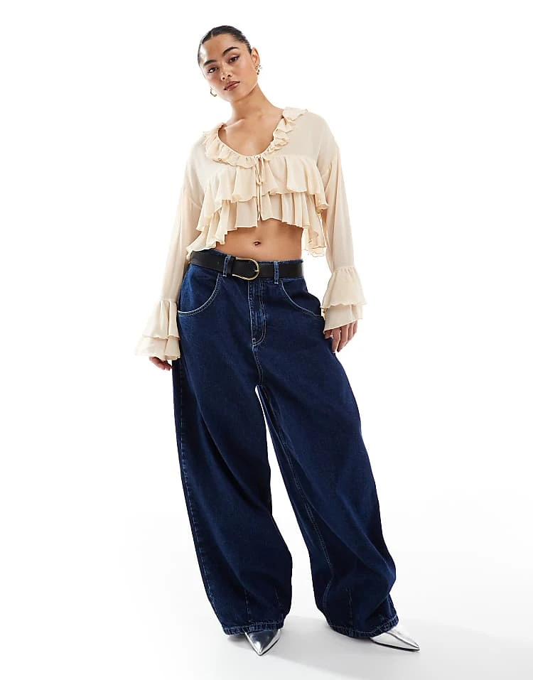 Bershka High Waisted Wide Leg Jeans In Indigo Wash For Women Blue