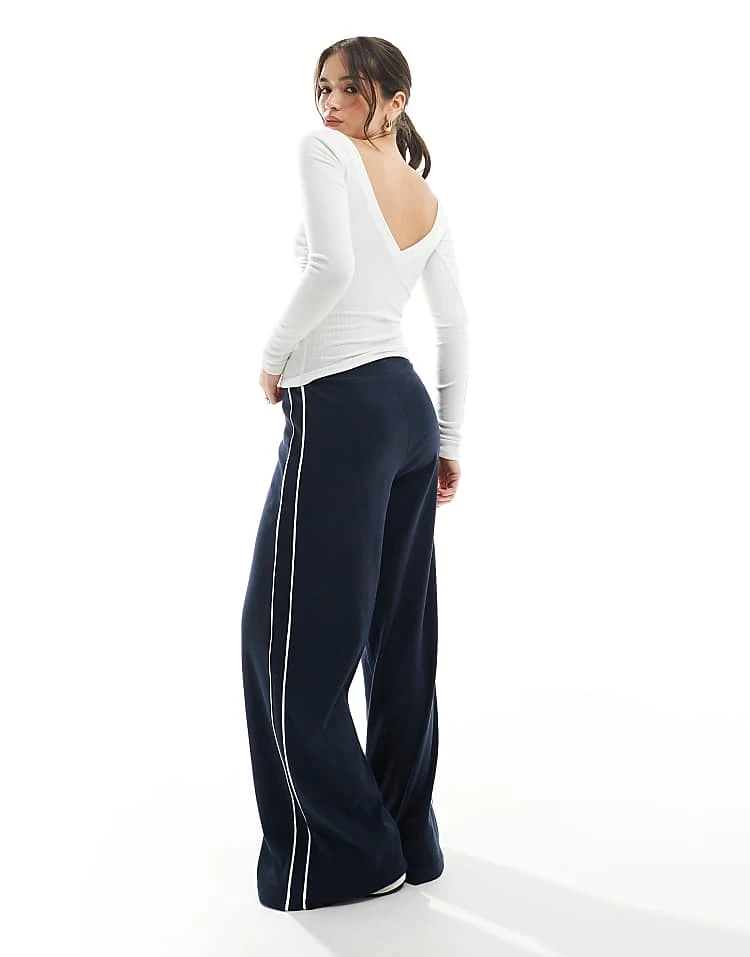Bershka Tie Waist Wide Leg Linen Trousers In Brown For Women