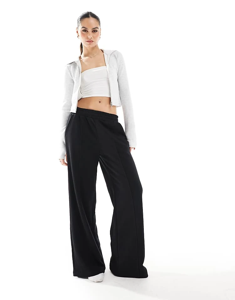 Bershka Petite High Waisted Wide Leg Jeans In Black For Women Black