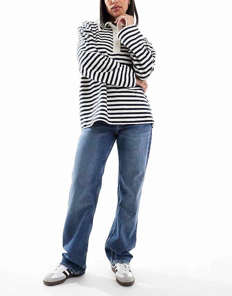 Bershka High Waisted Wide Leg Jeans In Light Wash Blue For Women