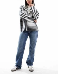 Bershka Petite High Waisted Wide Leg Jeans In Black For Women Black