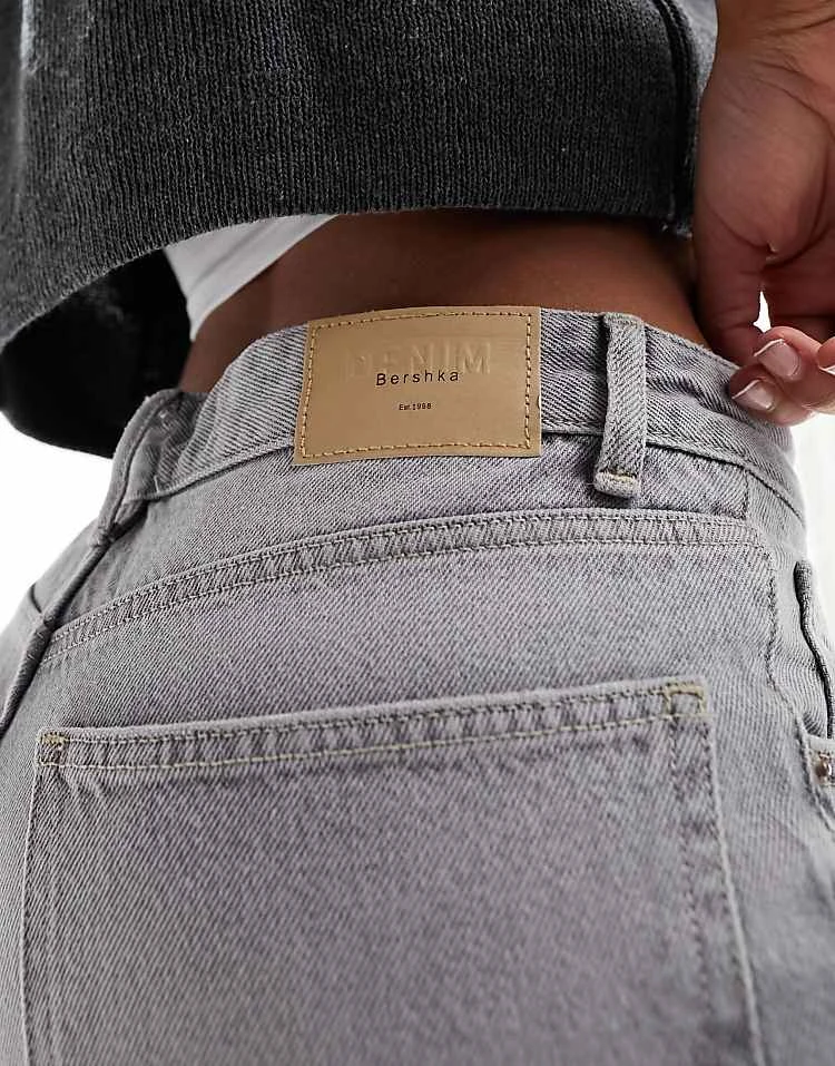 Bershka High Waisted 90s Wide Leg Jeans In Washed Grey For Women