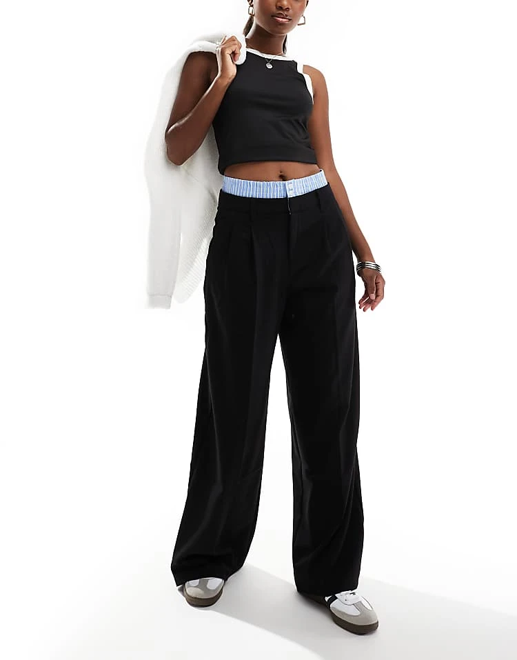 Bershka Tie Waist Wide Leg Linen Trousers In White For Women