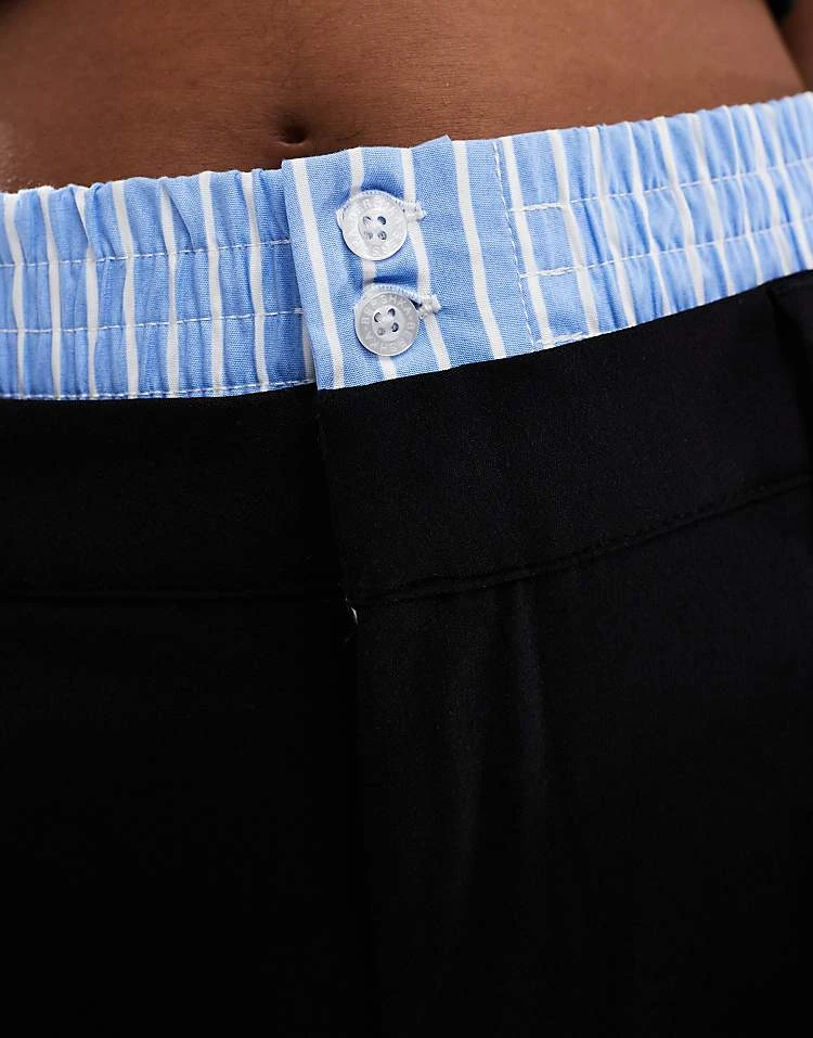 Bershka Crinkle Wide Leg Trousers And Tie Back Shirt Co-ord In Brown