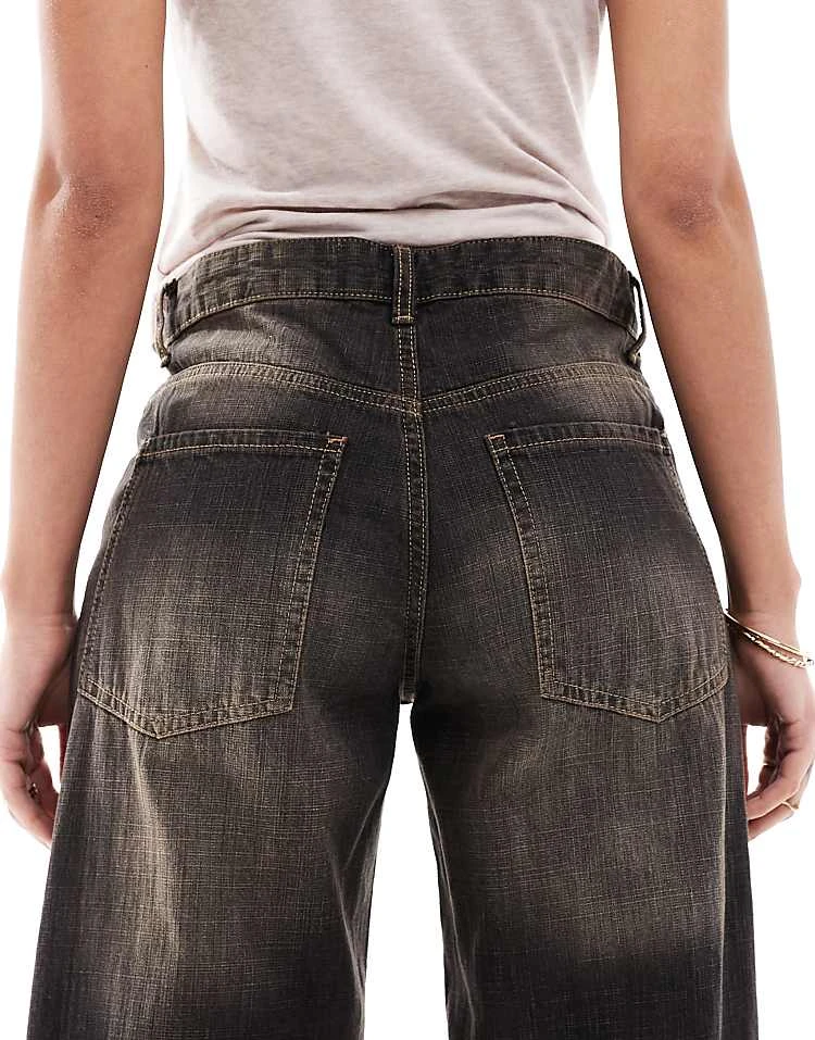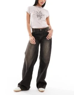 Bershka High Waisted 90s Wide Leg Jeans In Washed Grey For Women