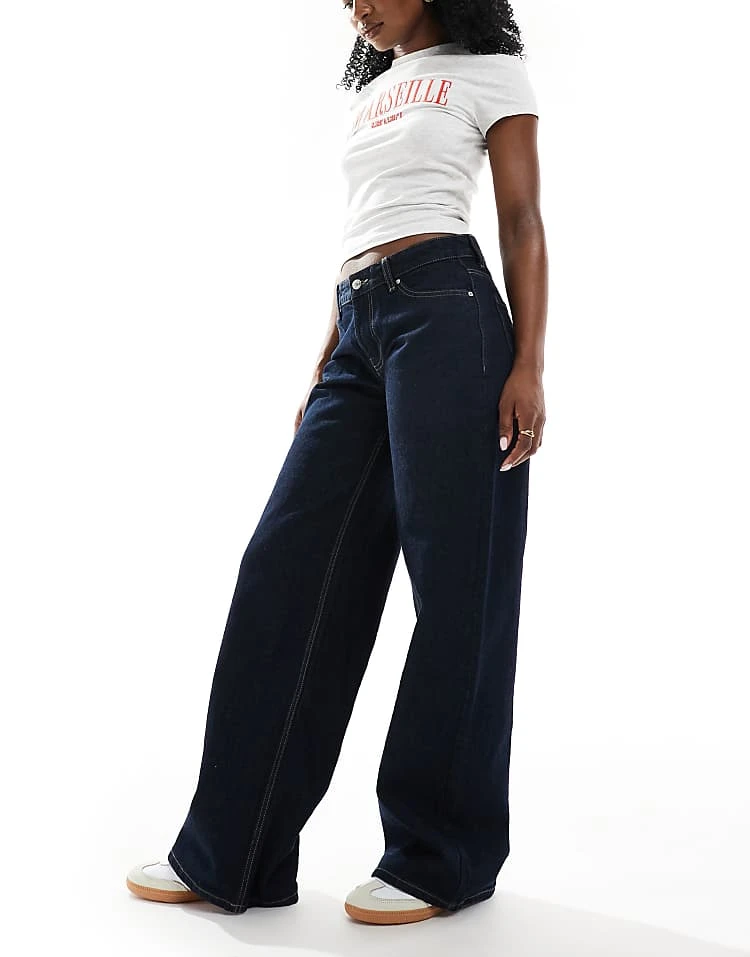 Bershka Petite High Waisted Wide Leg Jeans In Black For Women Black