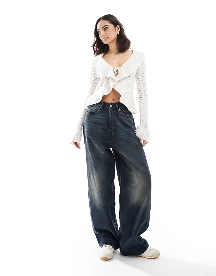 Bershka High Waisted 90s Wide Leg Jeans In Washed Grey For Women