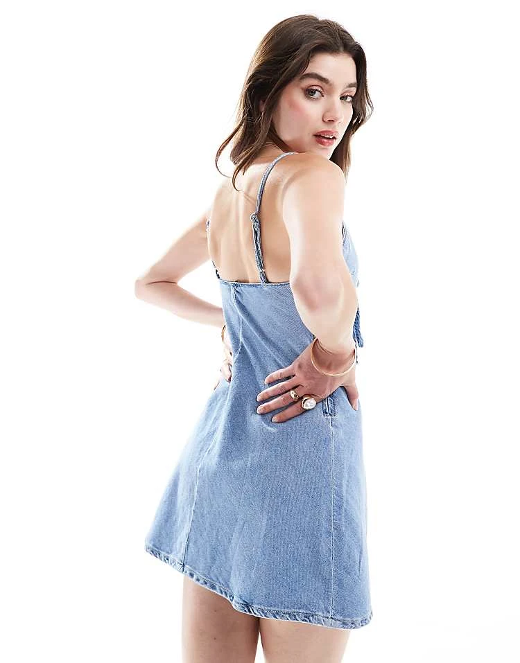 Bershka High Waisted Wide Leg Jeans In Light Wash Blue For Women