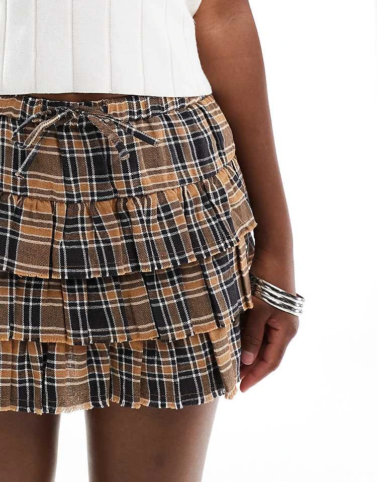 Bershka Tie Waist Wide Leg Linen Trousers In Brown For Women