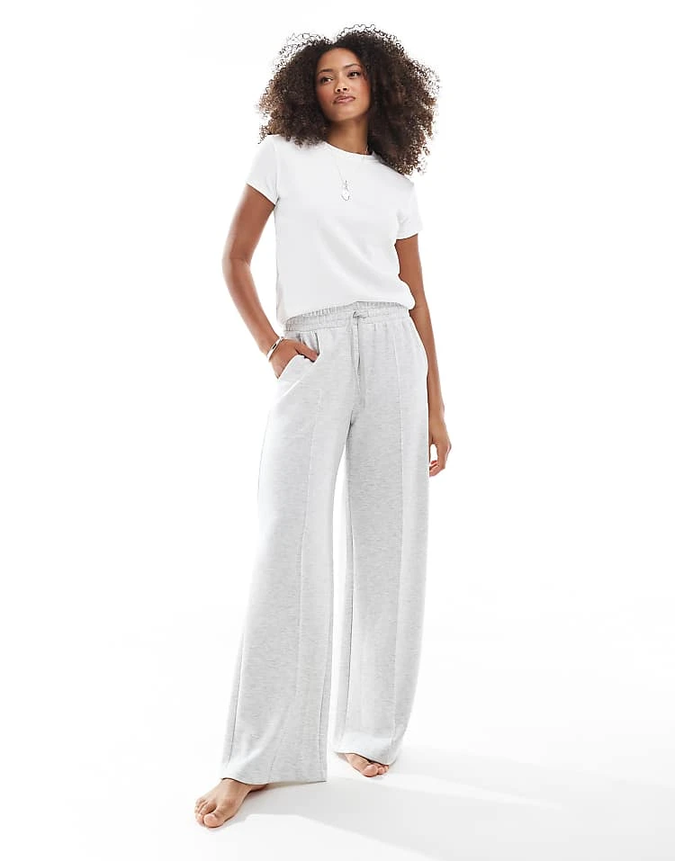 Bershka Tie Waist Wide Leg Linen Trousers In Brown For Women