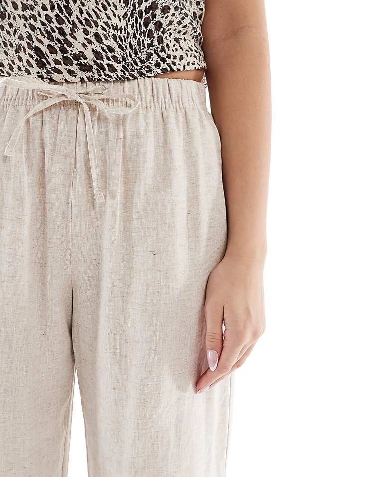 Bershka Crinkle Wide Leg Trousers And Tie Back Shirt Co-ord In Brown