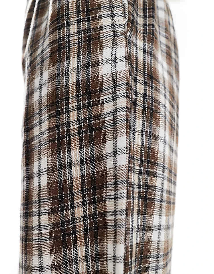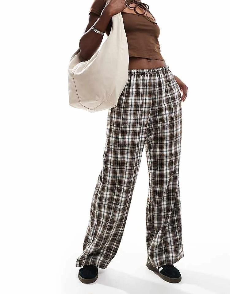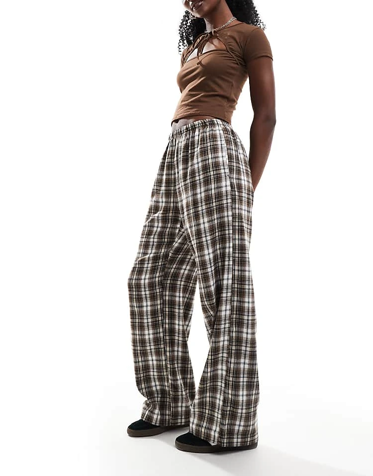 Bershka Tie Waist Wide Leg Linen Trousers In Brown For Women