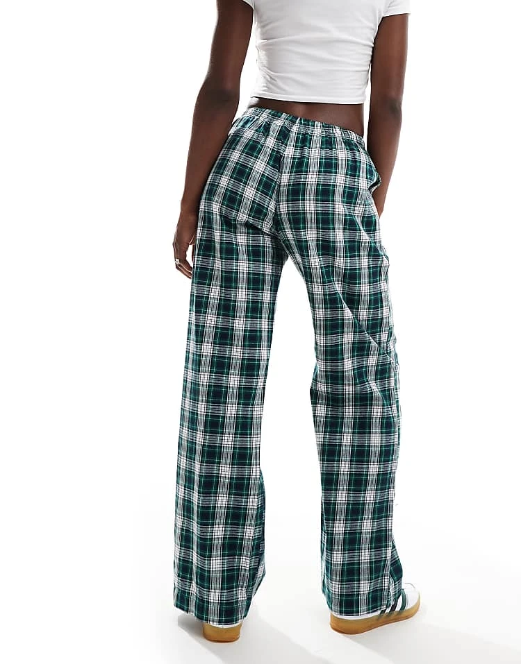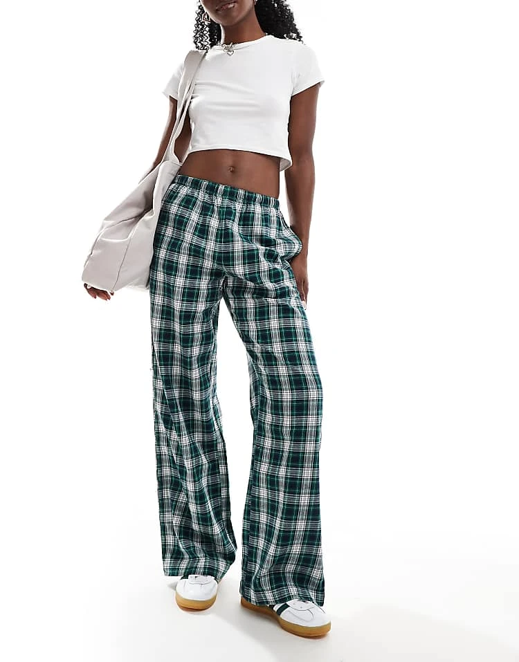 Bershka Tie Waist Wide Leg Linen Trousers In Ecru Stripe For Women