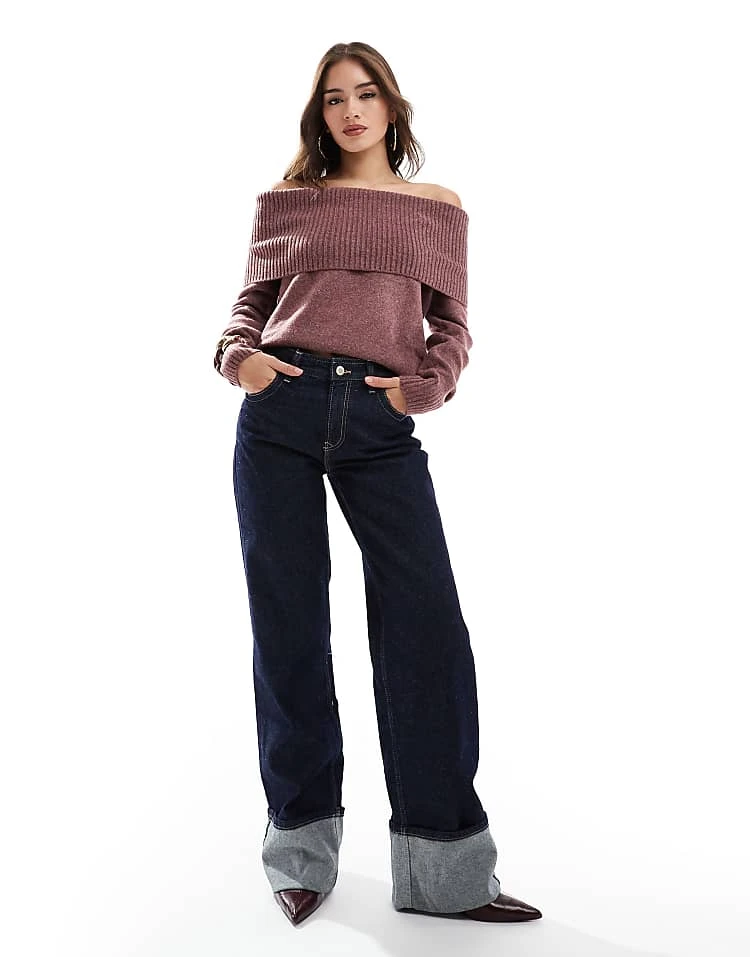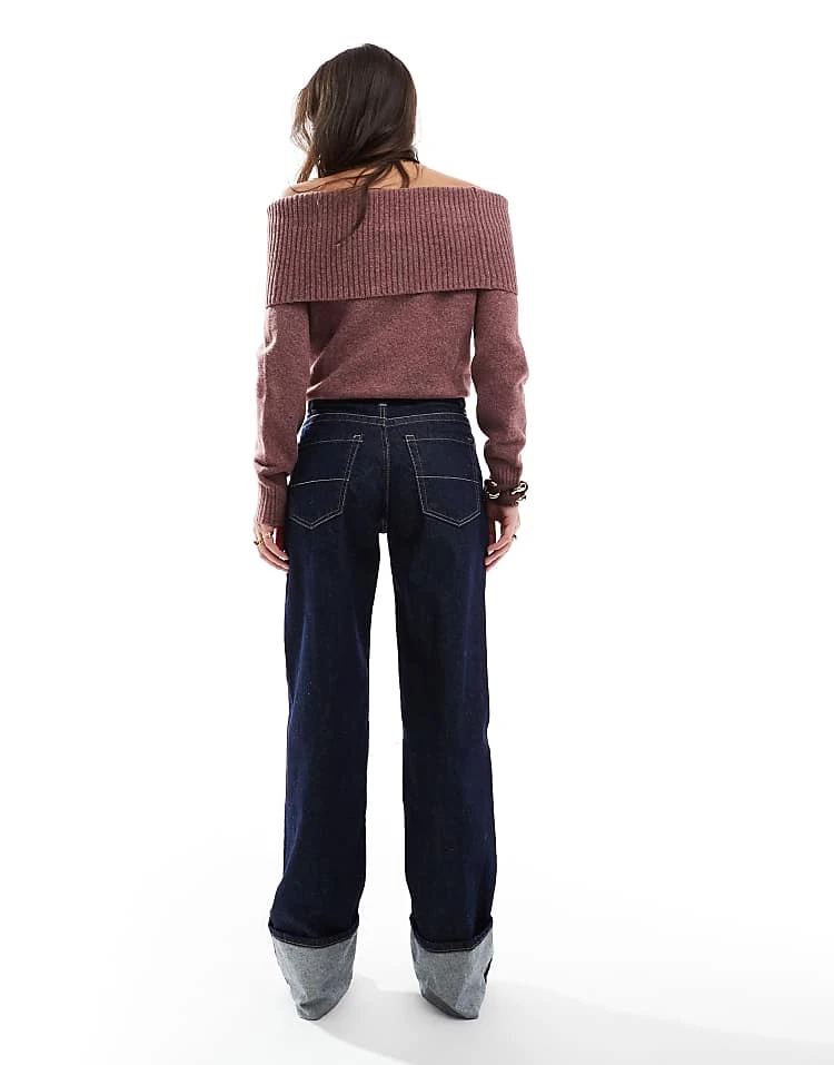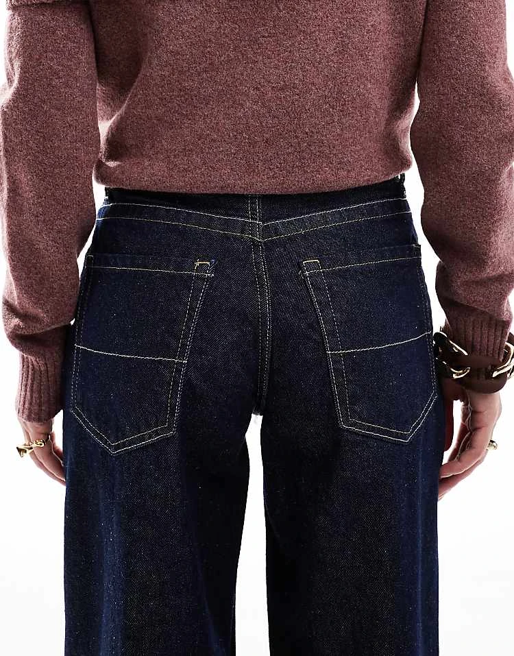 Bershka Clean Wide Leg Jeans In Authentic Dark Blue For Women