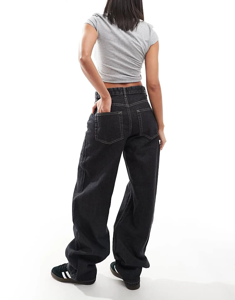 Bershka Clean Wide Leg Jeans In Authentic Dark Blue For Women