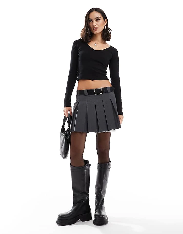Bershka Soft Touch High Neck Top And Trousers Co-ord In Dark Grey