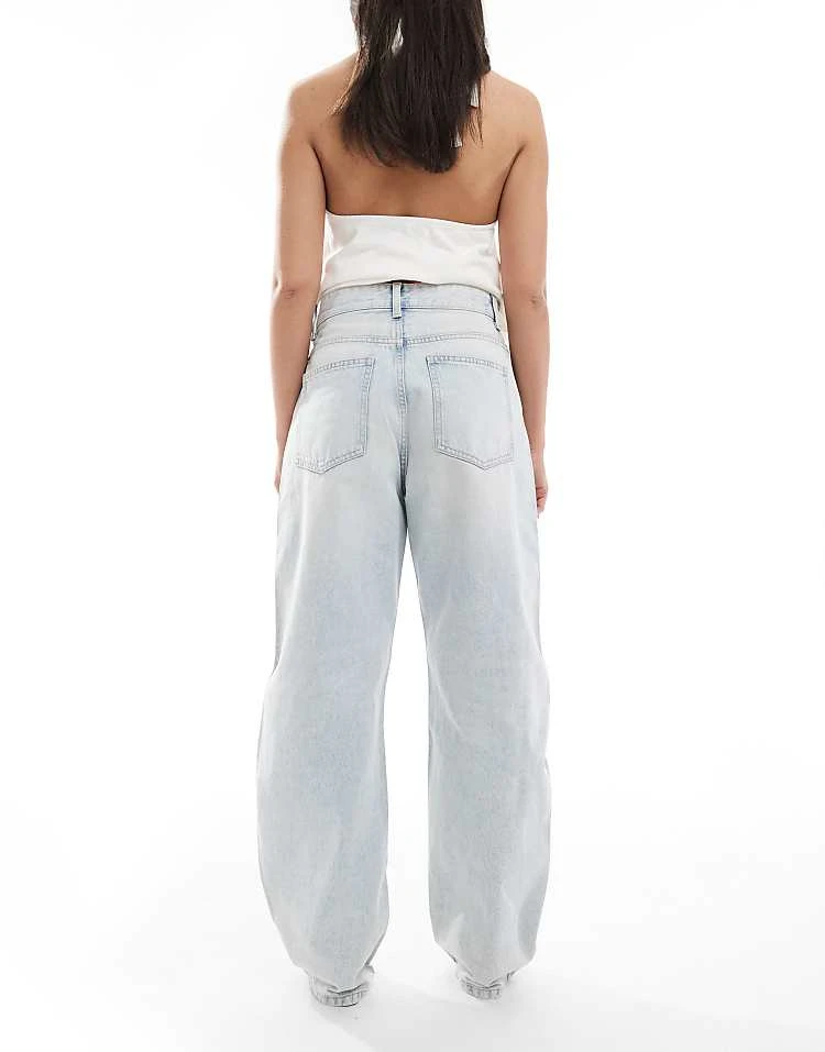 Bershka High Waisted Wide Leg Jeans In Indigo Wash For Women Blue