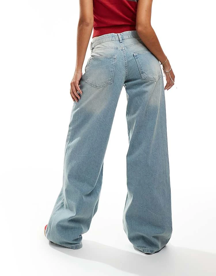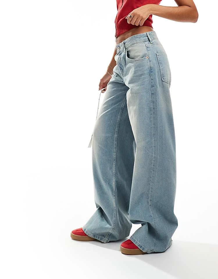Bershka High Waisted Wide Leg Jeans In Light Wash Blue For Women