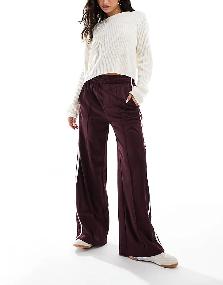 Bershka Tie Waist Wide Leg Linen Trousers In Ecru Stripe For Women