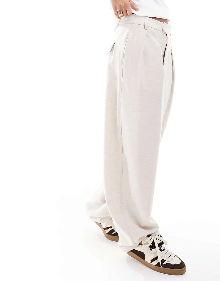 Bershka Tie Waist Wide Leg Linen Trousers In White For Women