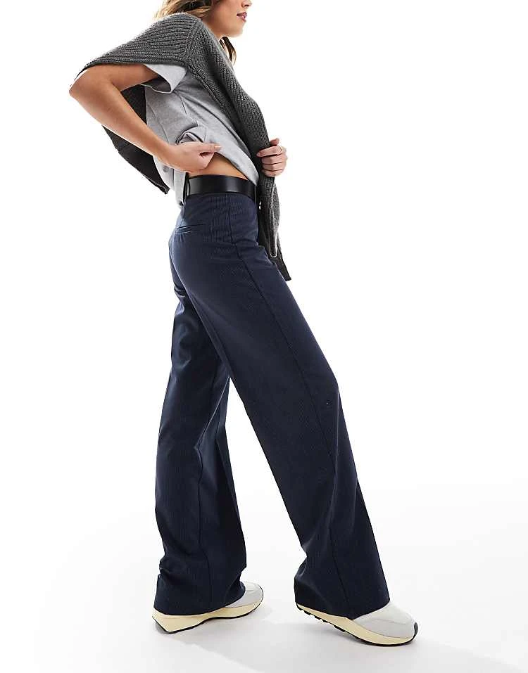 Bershka Clean Wide Leg Jeans In Authentic Dark Blue For Women