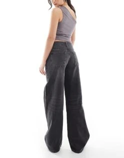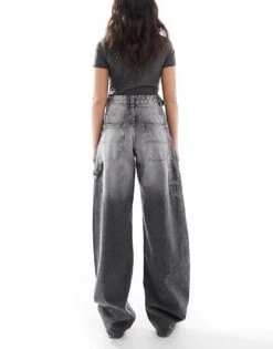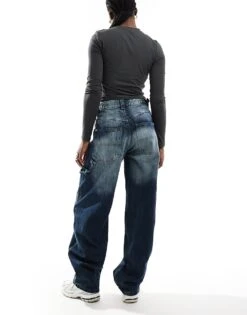 Bershka Baggy Balloon Leg Jeans In Dirty Wash Indigo For Women Blue