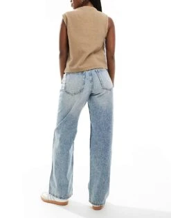 Bershka Baggy Skater Jeans In Dirty Mid Wash Blue For Women Blue