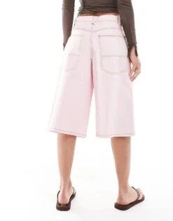 Bershka Adjustable Waist Carpenter Jeans In Acid Wash Blue For Women
