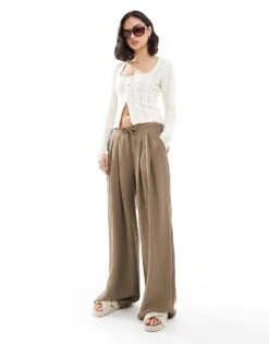 Bershka Textured Knitted Polo Jumper In Black And Tan Stripe For Women